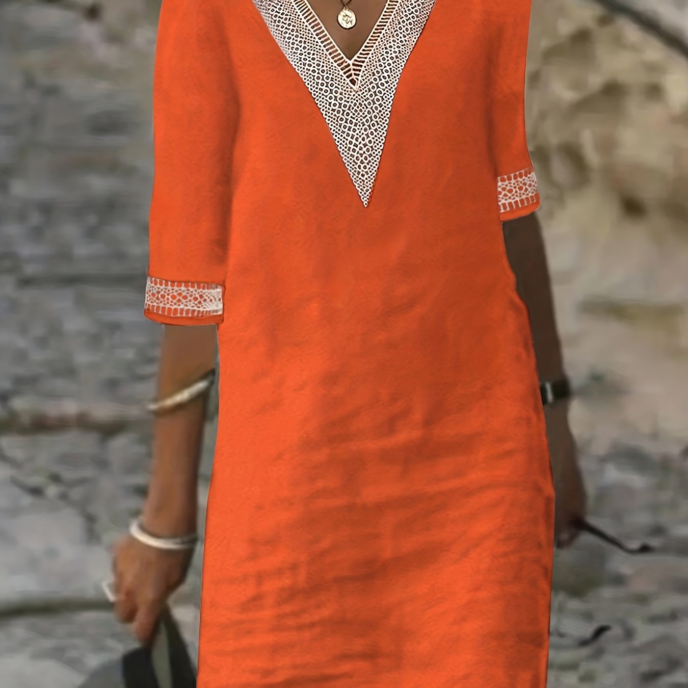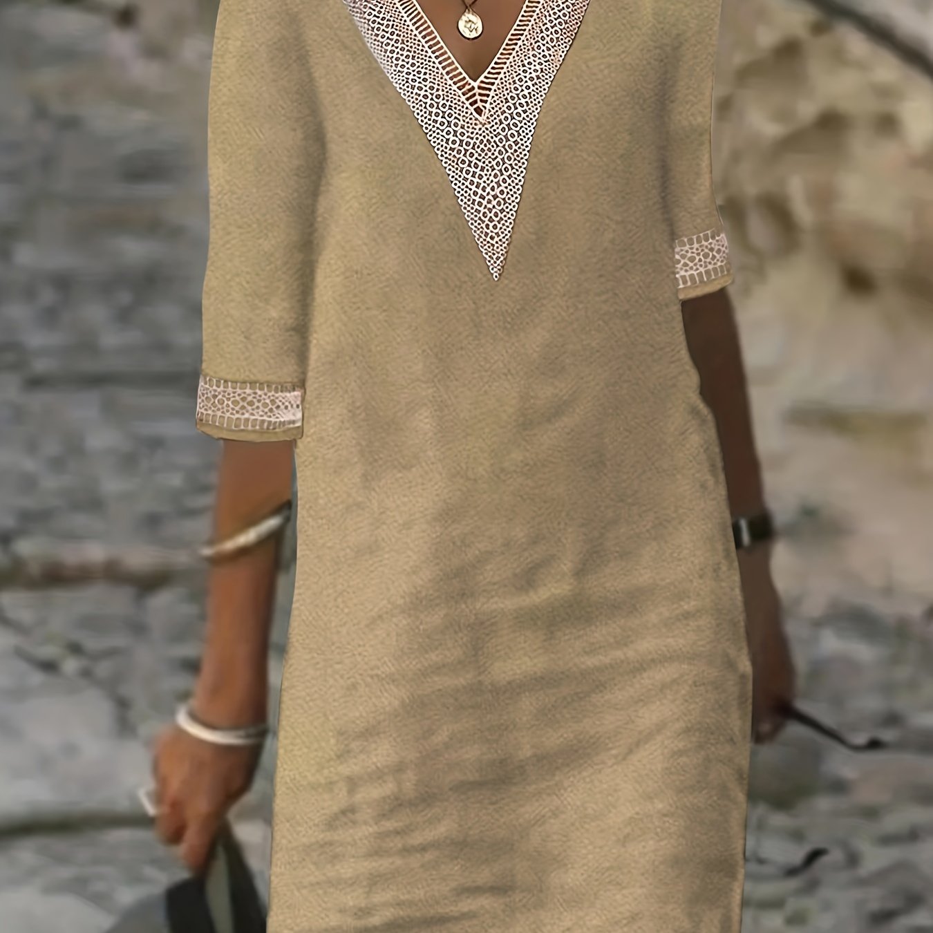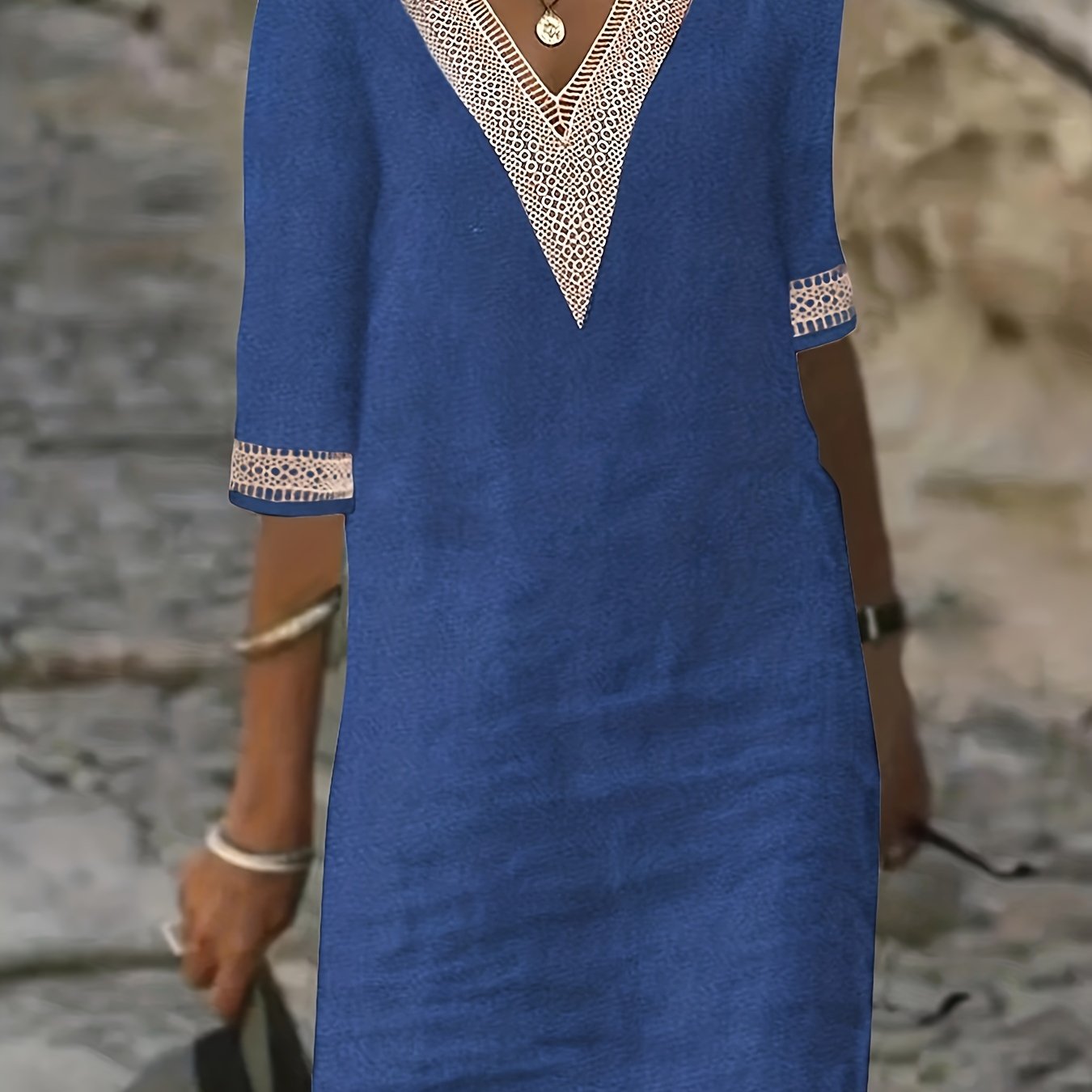 Wendy-V-Neck Lace Half-Sleeve Dress