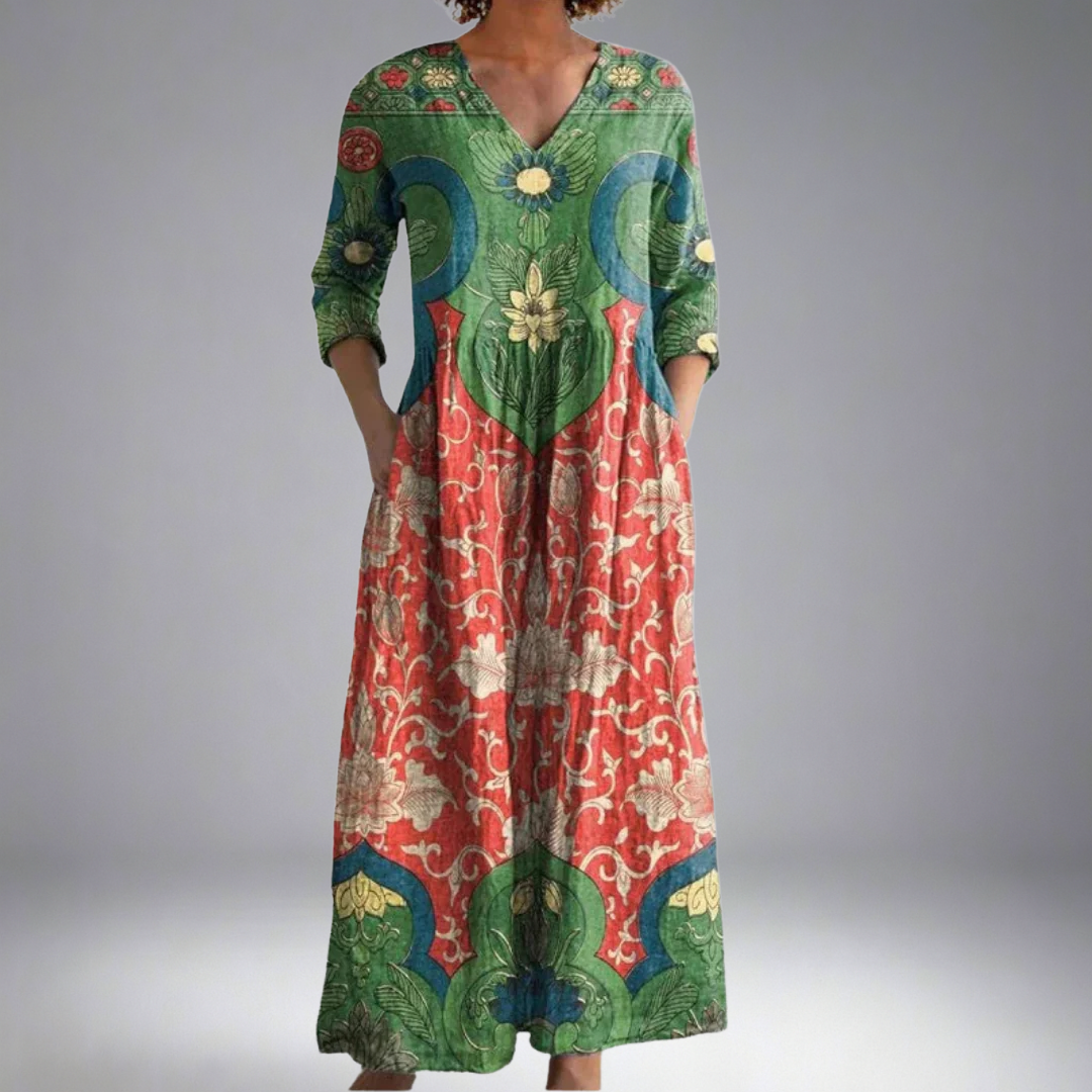 - Effortless elegance: V-neckline and ankle-grazing length make it easy to dress up or down — just add sandals or flats.